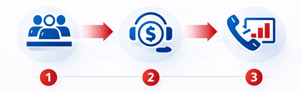 Calls may be direct, routed, or transferred-always performance-focused and quality-controlled.